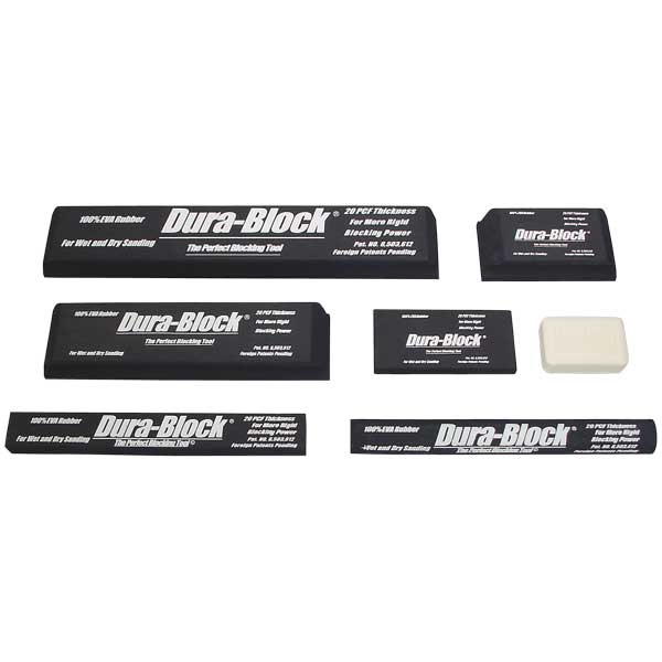 Dura-Blocks® give you the perfect balance between flexibility and hardness when sanding slightly curved areas that are difficult to finish with other blocks. The medium and long blocks are great for block-sanding large areas like hoods, roofs, deck lids, doors and fenders. Made of 100% EVA rubber. Accepts 2-3/4" wide adhesive-back sandpaper.